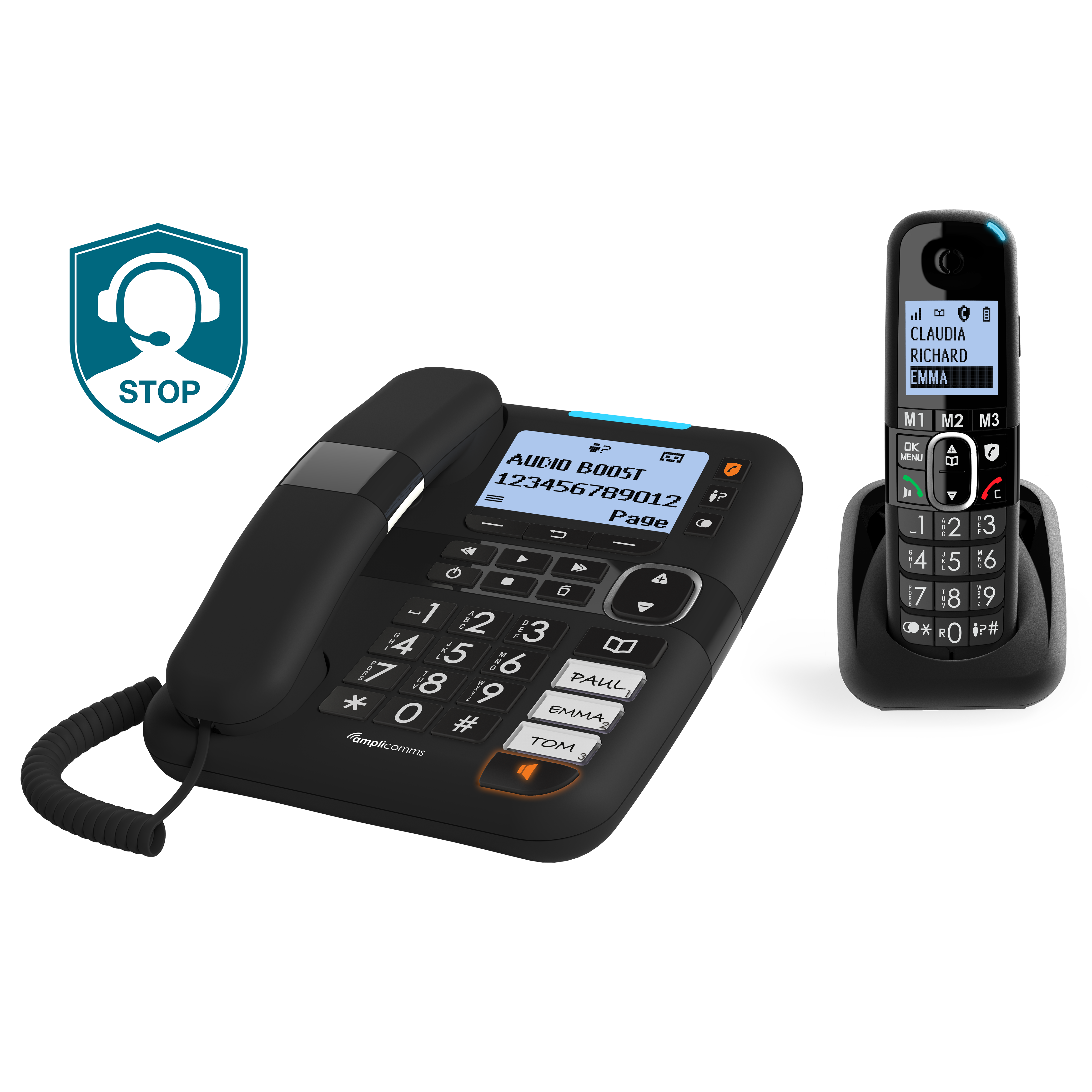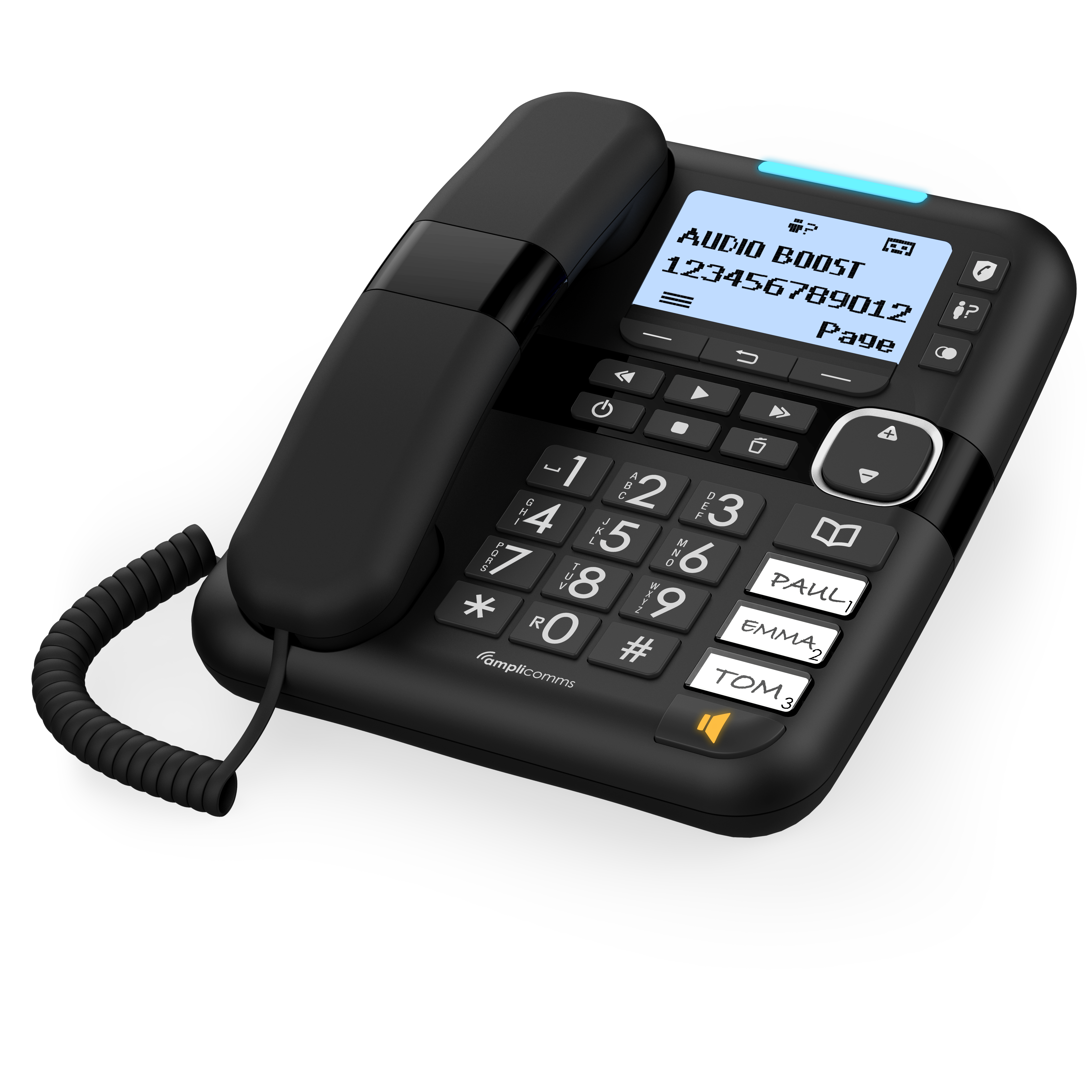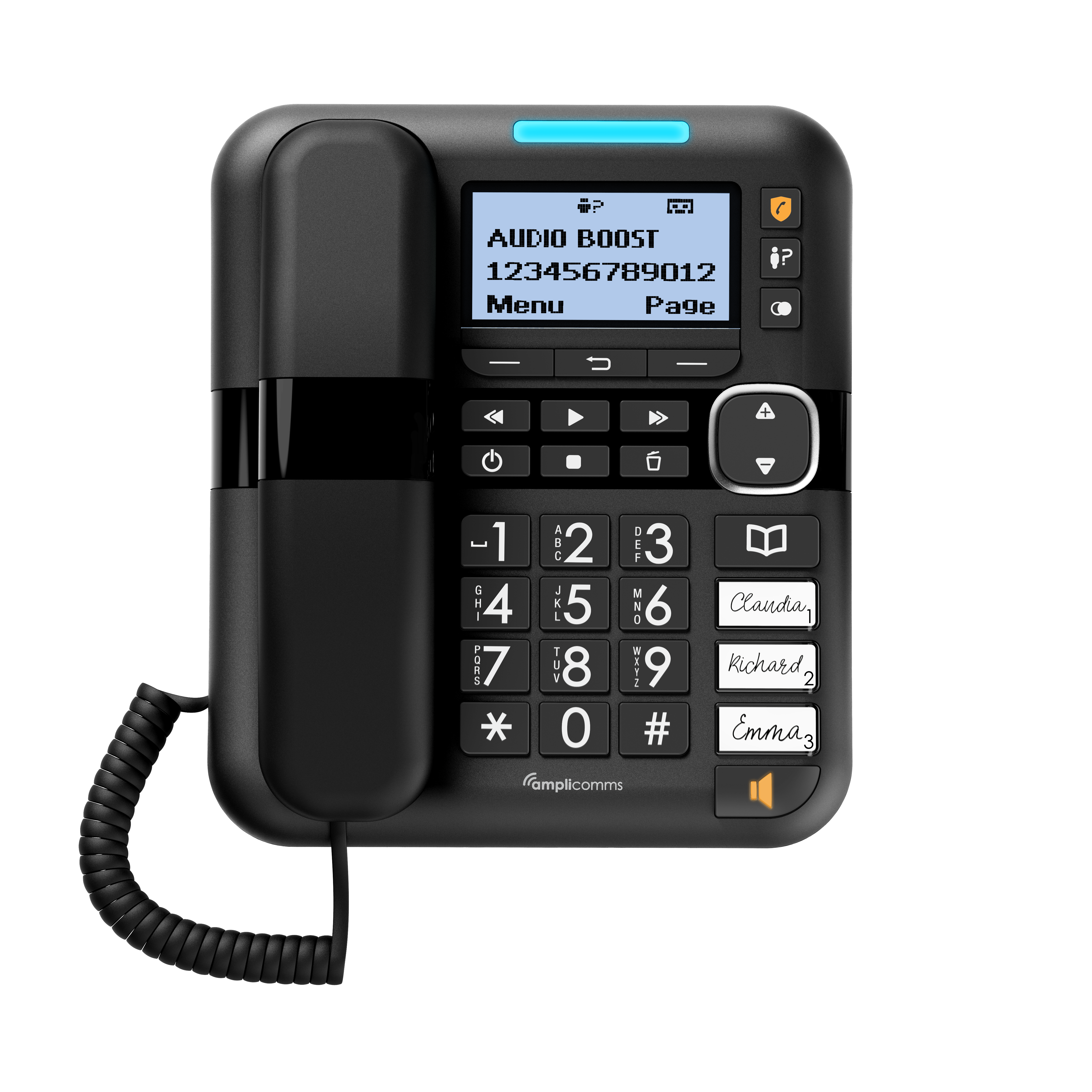 A DECT phone with enhanced features and extra loud audio-boost and ringers