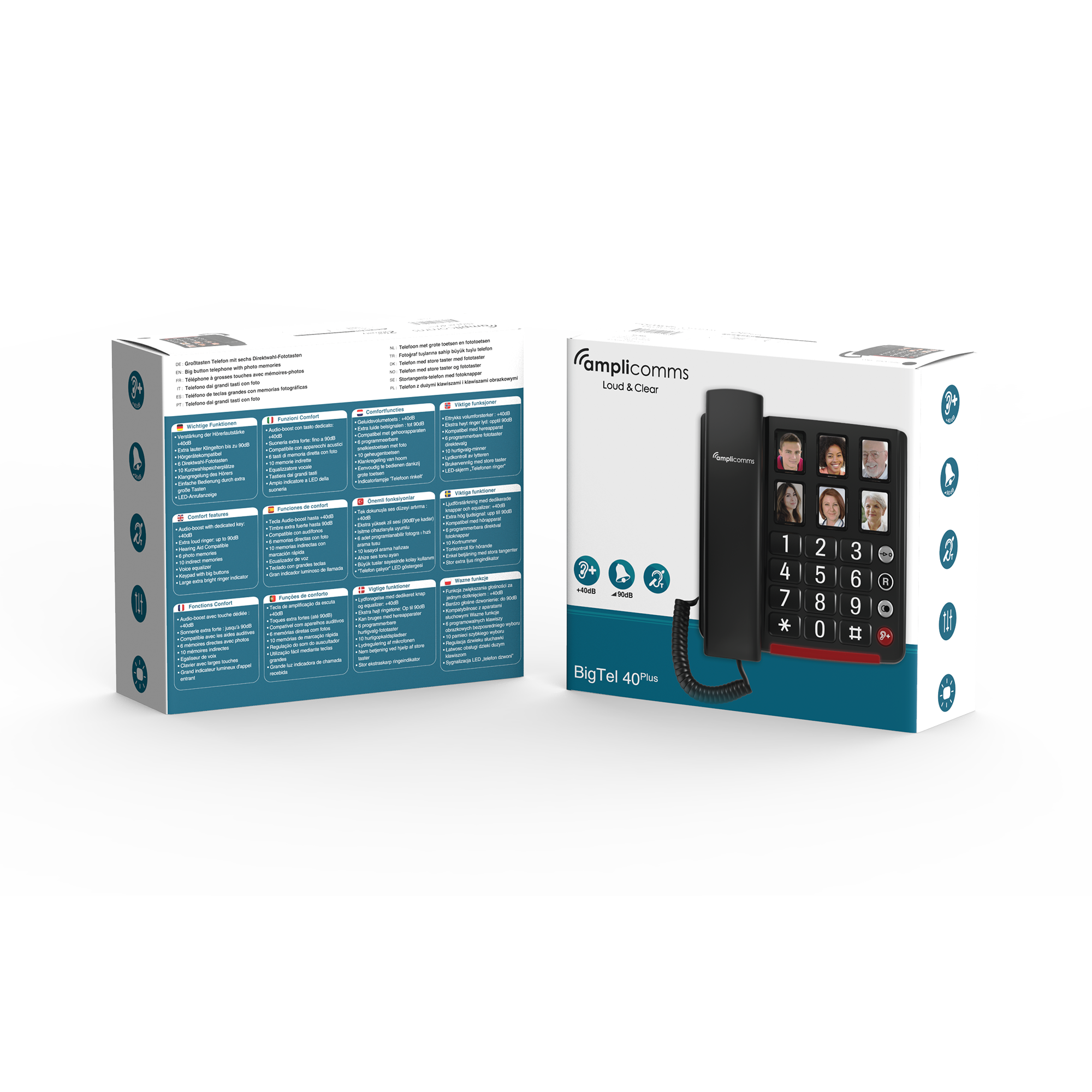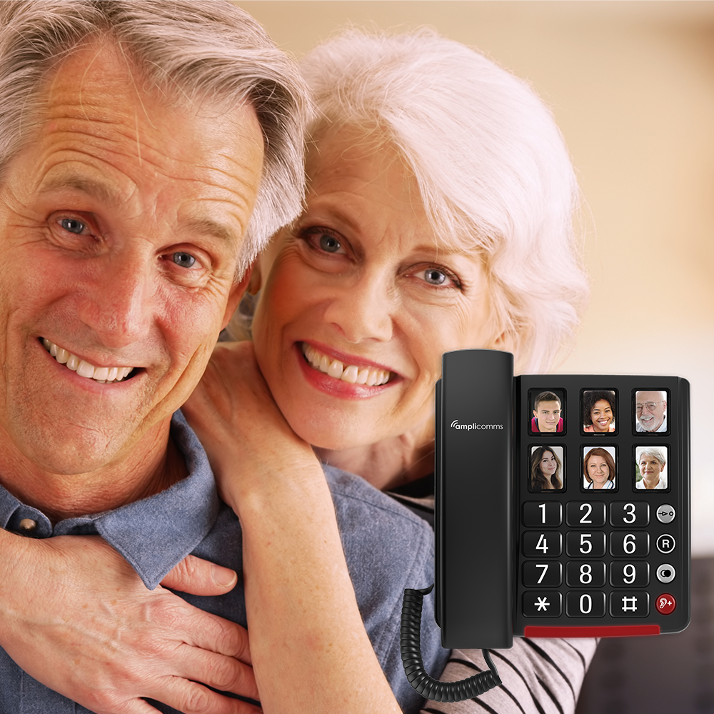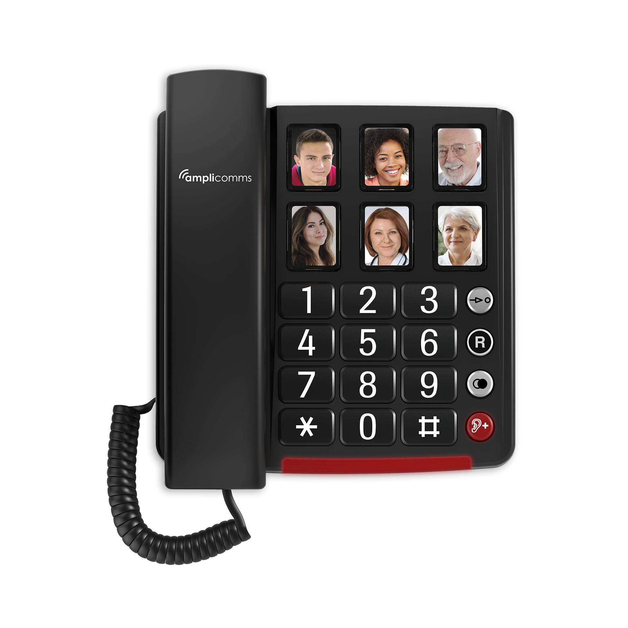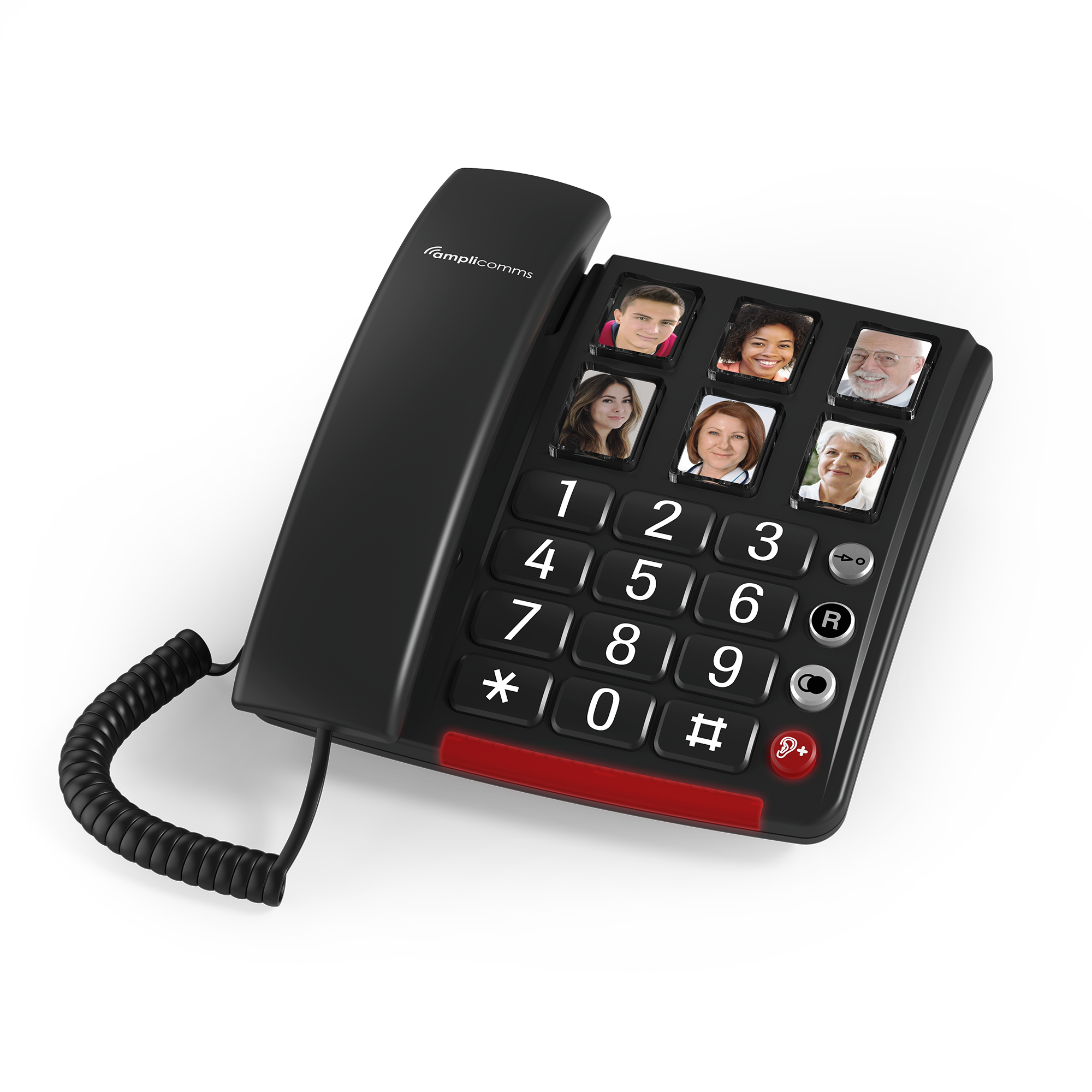 Corded Big Button Phone with six photo memories, Audio-Boost and Extra Loud Ringers for People in Search of Amplified Sound or with Moderate to Higher Hearing Loss.